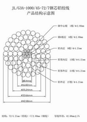 ⑵、钢芯铝绞线具有结构简单、架设与维护方便、传输容量大、又利于跨越江河和山谷等特殊地理条件的数设等特点,因此该产品广泛应用于各种电压级的架空输配电线路中。